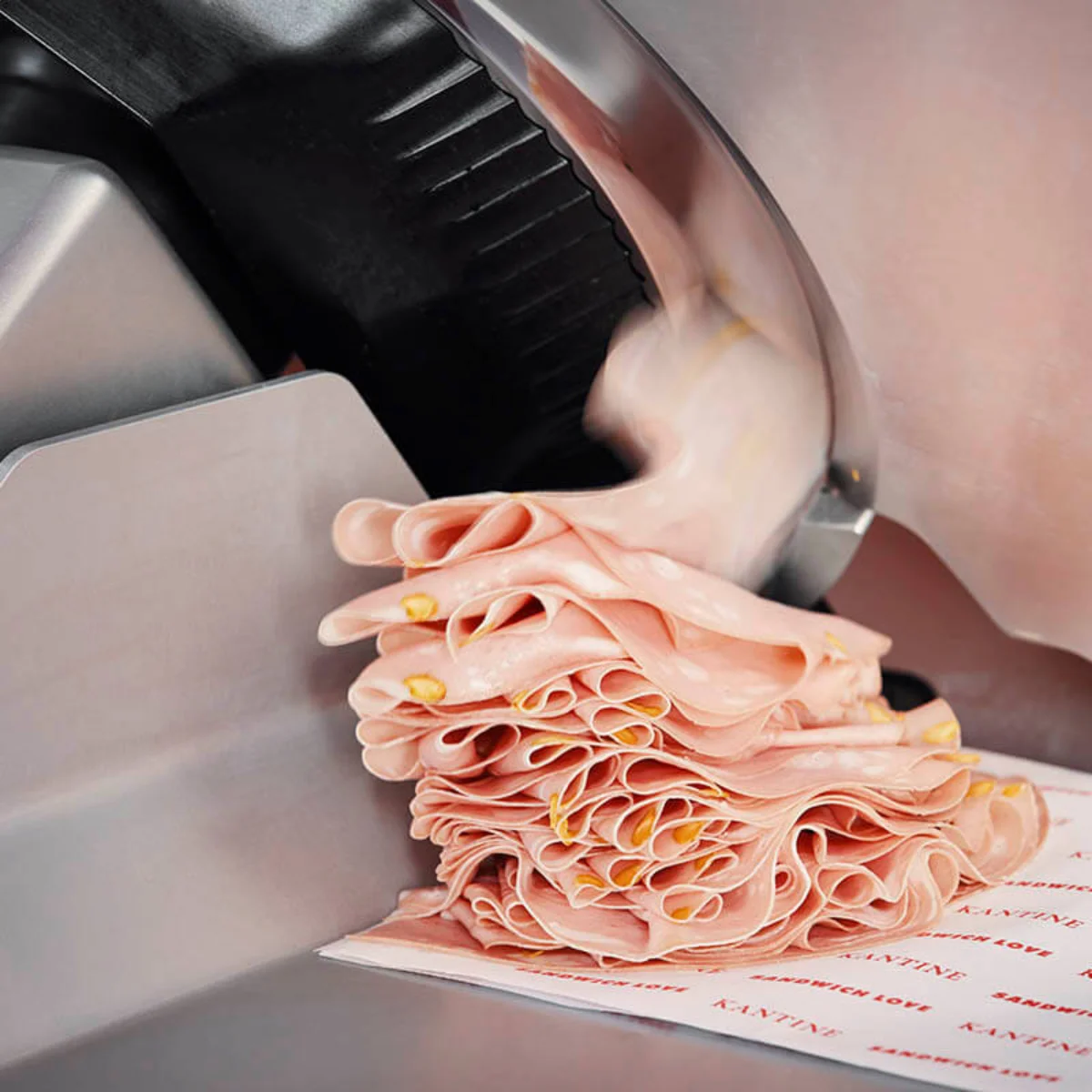l servicio de la cantina no tiene rival en Offenburg. Ubicada en una galería de arte, esta empresa de nueva creación produce y sirve bocadillos de calidad insuperable, cubiertos con carne caliente recién cortada y producida en la zona, acompañados de queso fresco y mortadela o verduras finamente picadas. Cada bocadillo se hace por encargo, y los pedidos deben prepararse con rapidez, porque muchos clientes acuden durante su pausa para comer. Aun así, lo fundamental es seguir las recetas al pie de la letra y evitar el desperdicio de alimentos. El dueño de la cantina, buscaba una máquina capaz de cortar y pesar con la máxima precisión, acelerar los procesos y procesar con delicadeza ingredientes de alta calidad, y encontró la cortadora por gravedad automática GSP HD de Bizerba.