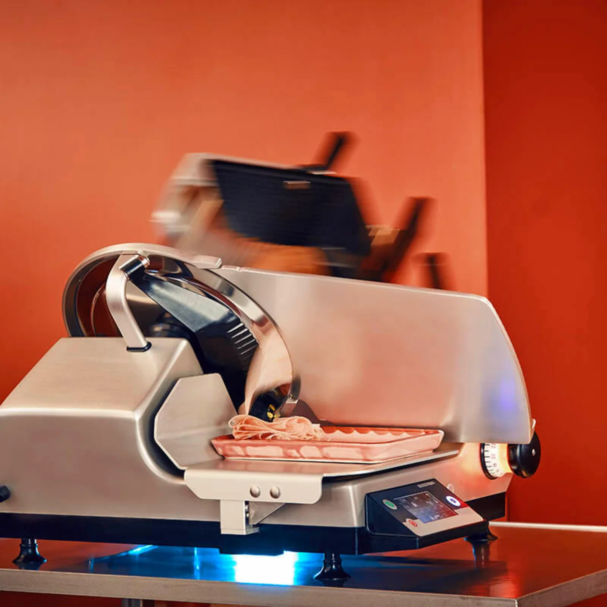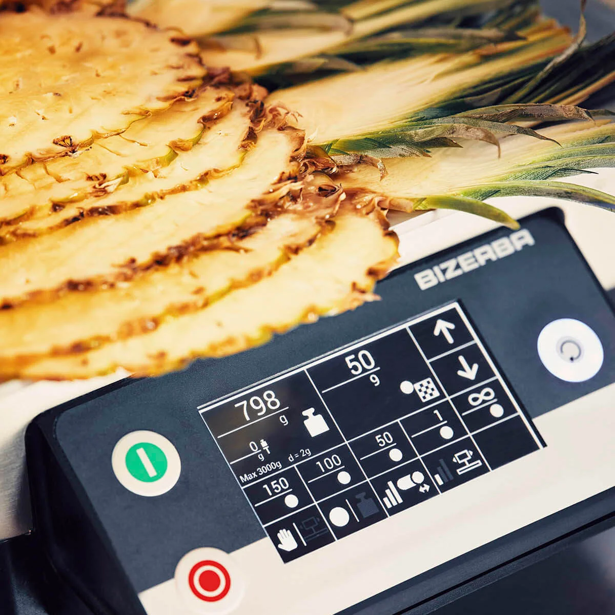 En la práctica diaria, la GSP HD demostró rápidamente su eficacia y cumplió todos los requisitos del cliente. Corta automáticamente los productos de alta calidad de la cantina al peso deseado -desde lonchas finas de mortadela de 0,5 milímetros hasta trozos de piña de 3 milímetros de grosor y lonchas de panceta de cerdo caliente- incluso en un espacio limitado. Corta con gran precisión y uniformidad, y puede limpiarse rápida y fácilmente con la cuchilla de corte extraíble. La GSP HD encaja tanto en el concepto operativo como visual de un negocio de catering que valora la modernidad y la sostenibilidad.