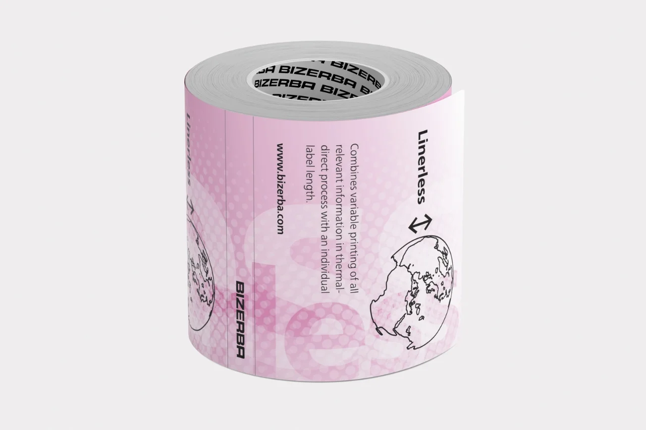 Benefit from perfectly matched labeling processes in thermal direct process. Bizerba linerless labels are optimally aligned to and manufactured for the application with a Bizerba linerless printer with and without cutter.
