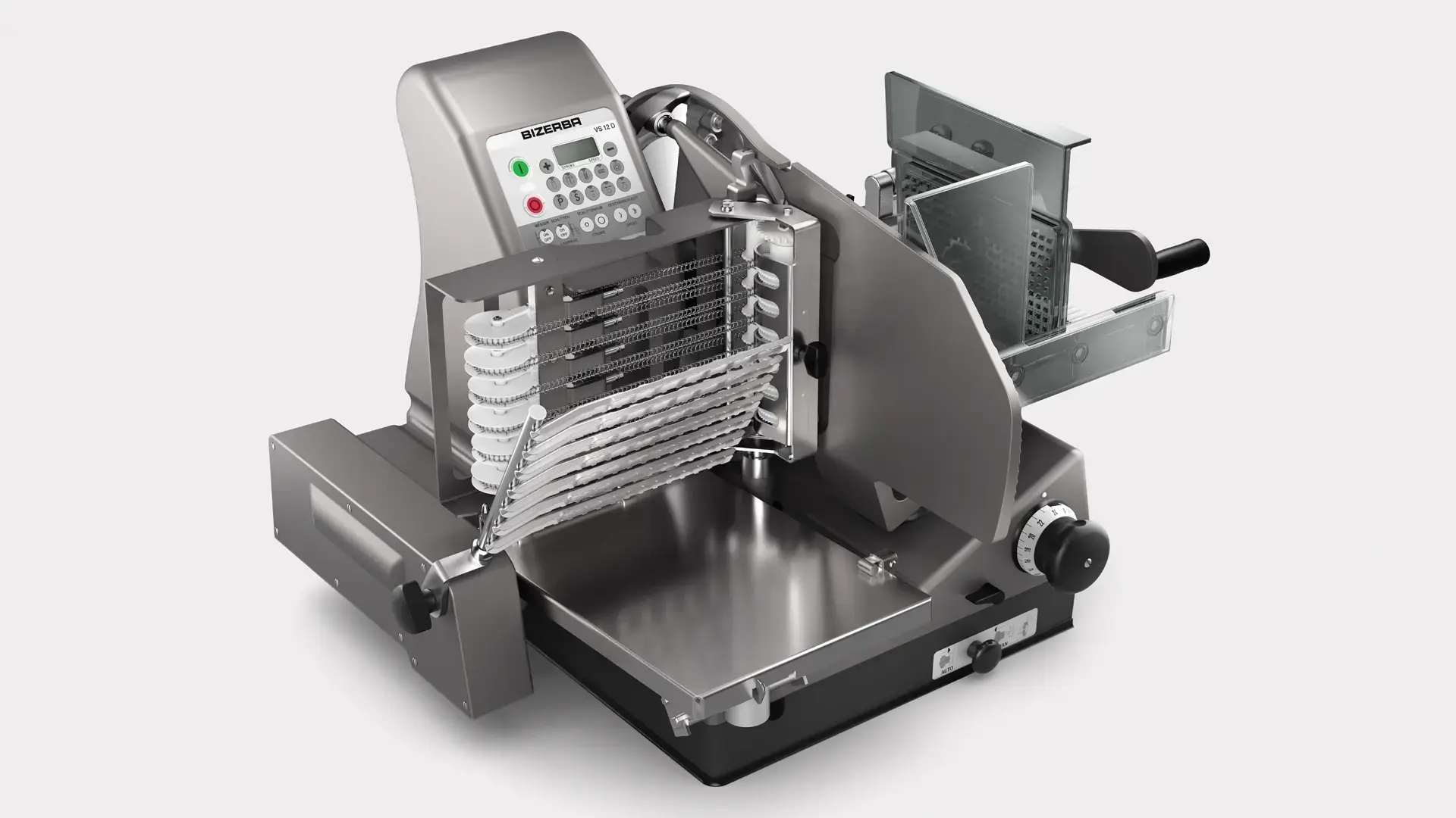 Cortadora vertical semiautomática de la clase Premium. Colocación sin intervención humana para la máxima higiene y la presentación óptima.